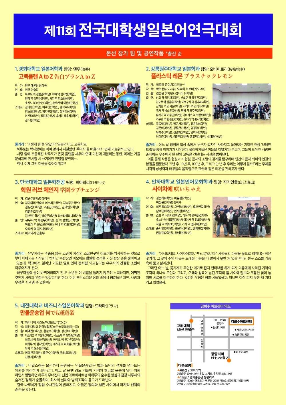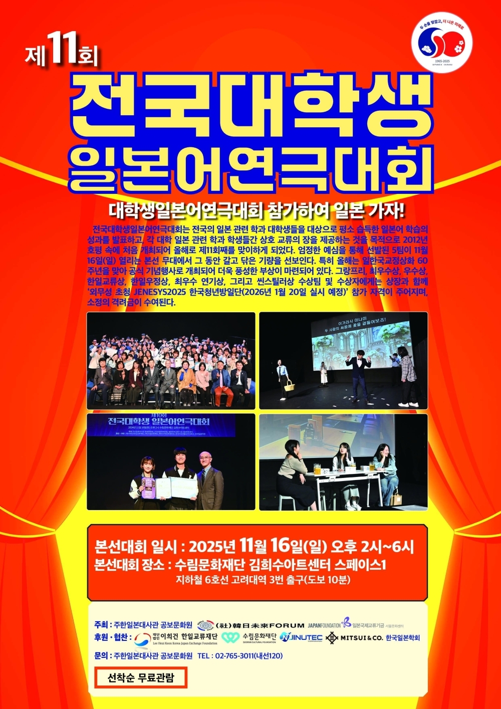 [日韓国交正常化60周年記念]「第11回全国大学生日本語演劇大会」の開催[2025年11月16日(日)午後2時~6時]