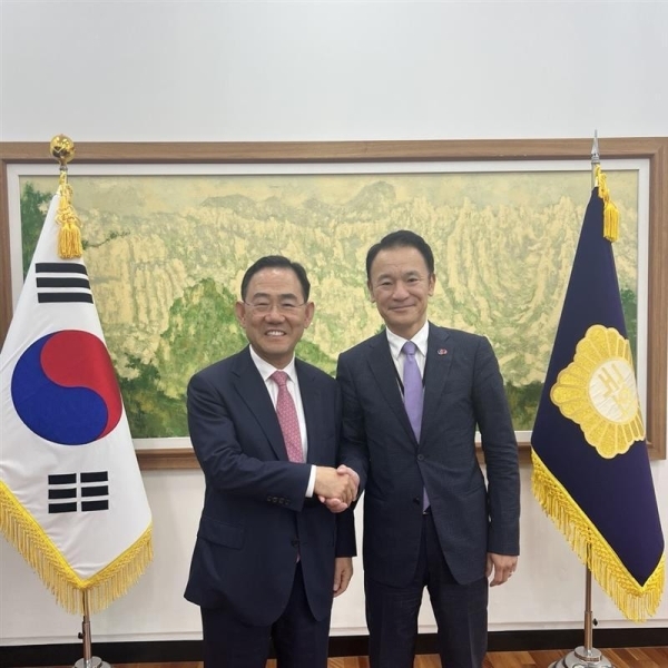 松尾次席公使による朱豪英韓国国会副議長・韓日議員連盟会長往訪 令和7年10月10日 【韓国語版(한국어)】 9月23日、松尾裕敬次席公使は、朱豪英(チュ・ホヨン)韓国国会副議長・韓日議員連盟会長を往訪し、日韓国交正常化60周年記念行事等について会談しました。