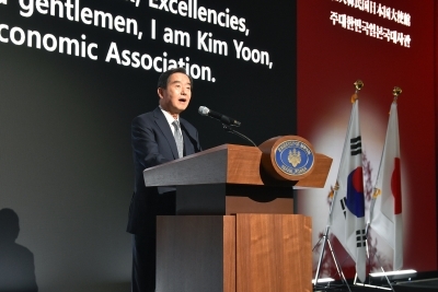 건배사를 하는 김윤 한일경제협회 회장 |