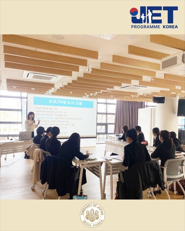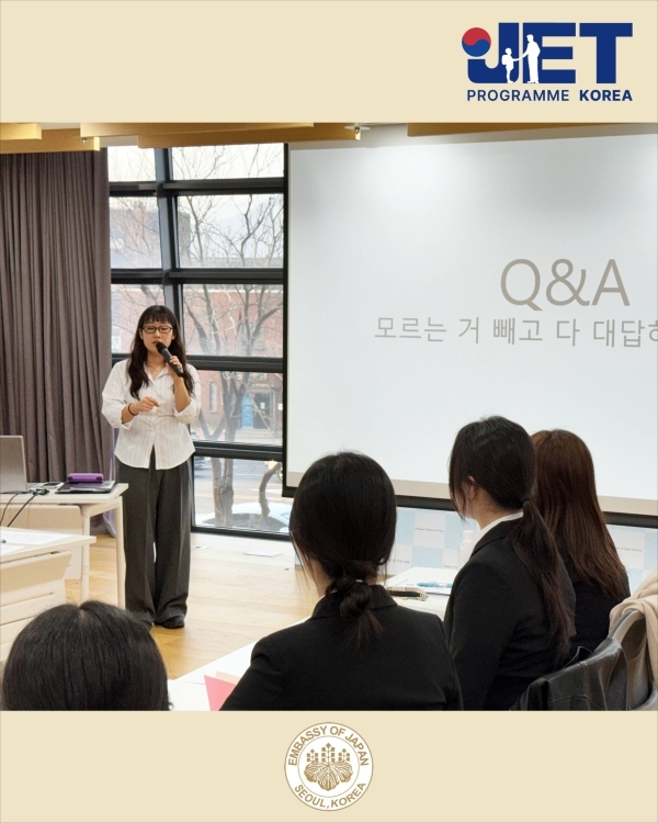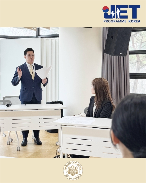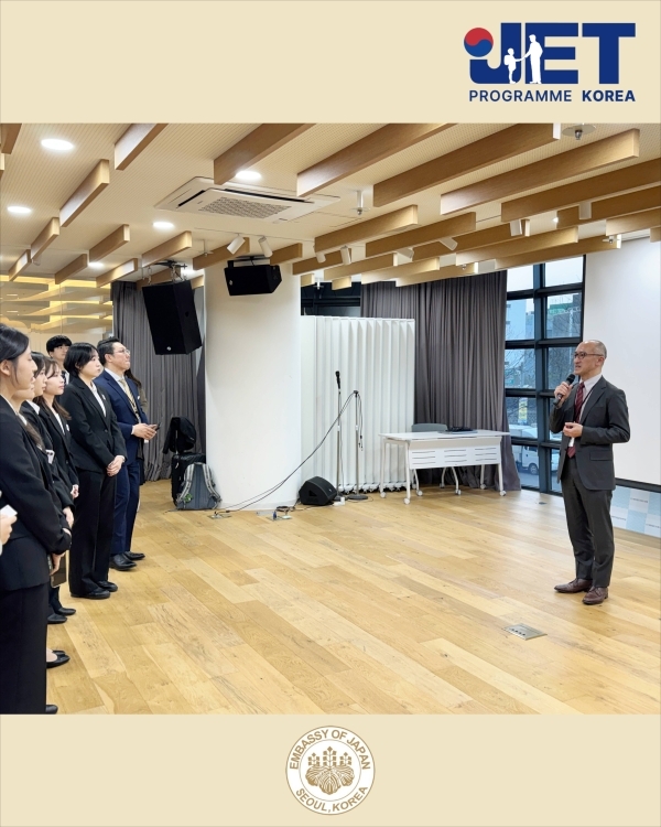 ✅ 출발 전 오리엔테이션은 츠카다 준 일등서기관의 격려와 응원 메시지로 시작되었으며, 이어 JET프로그램 담당자가 비자 취득 절차 및 도일 관련 사항을 안내했습니다. 또한 JET 선배들이 들려주는 일본 현지 생활 및 업무 노하우를 공유하는 뜻깊은 시간도 가졌습니다. 일본 생활을 앞둔 참가자들에게 매우 유익한 정보가 되었기를 바랍니다.