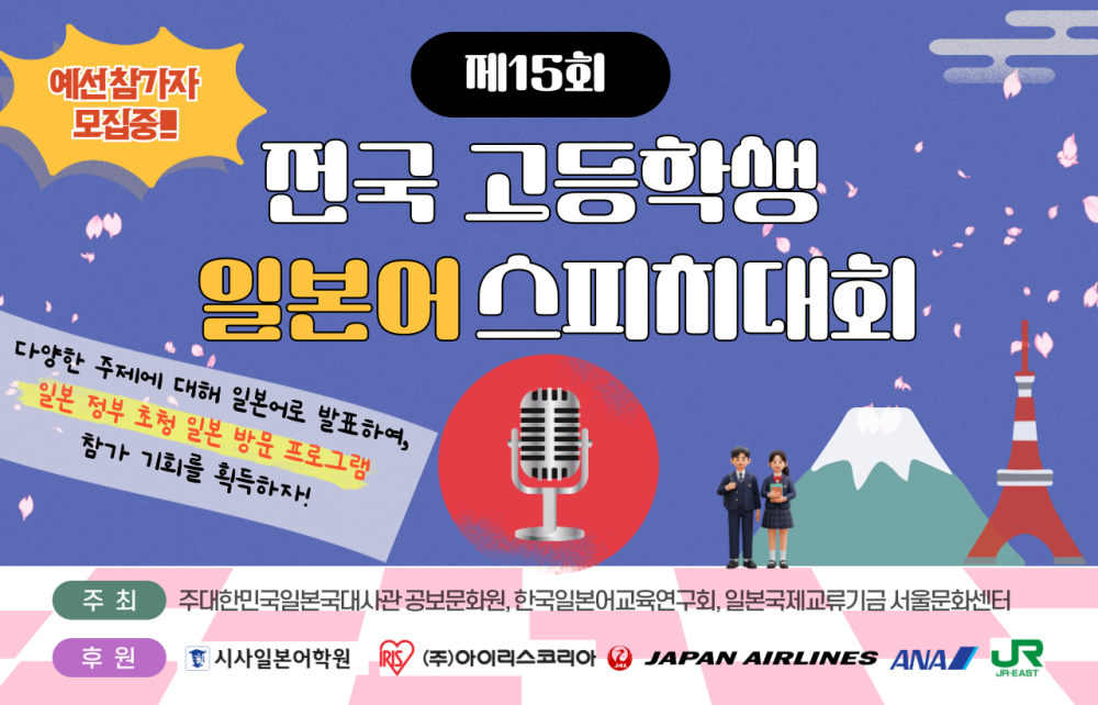 - 후원(예정): 시사일본어학원, ㈜아이리스코리아, JAL, ANA, JR동일본