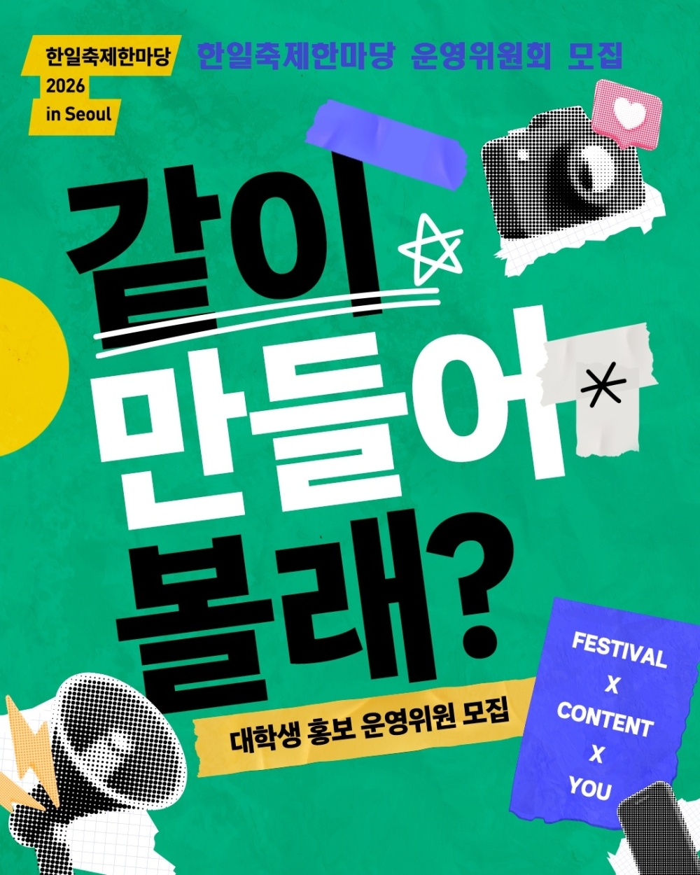 ‘한일축제한마당 2026 in Seoul’과 함께할 대학생 홍보 운영위원을 모집합니다.